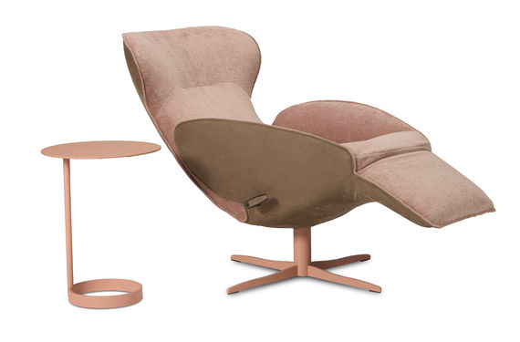 L'édition limitée Daydreamer Earth est fabriquée à partir d'un tissu doux, recyclé et lavable, enveloppé dans un cuir nubuck de première qualité d'une teinte terracotta chaude, piétement rouille